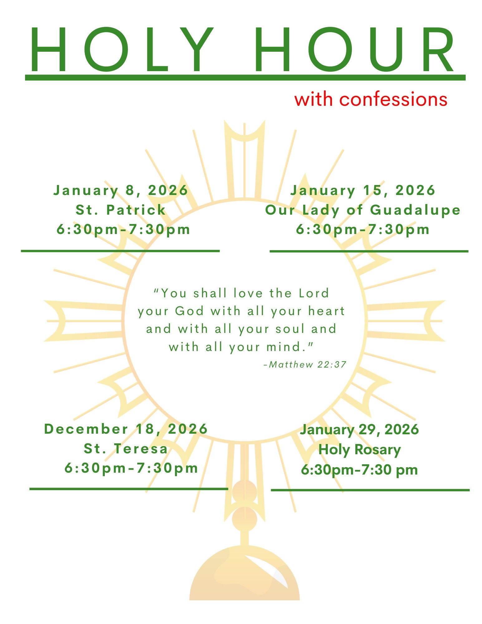 St. Isidore Family Holy Hour Schedule