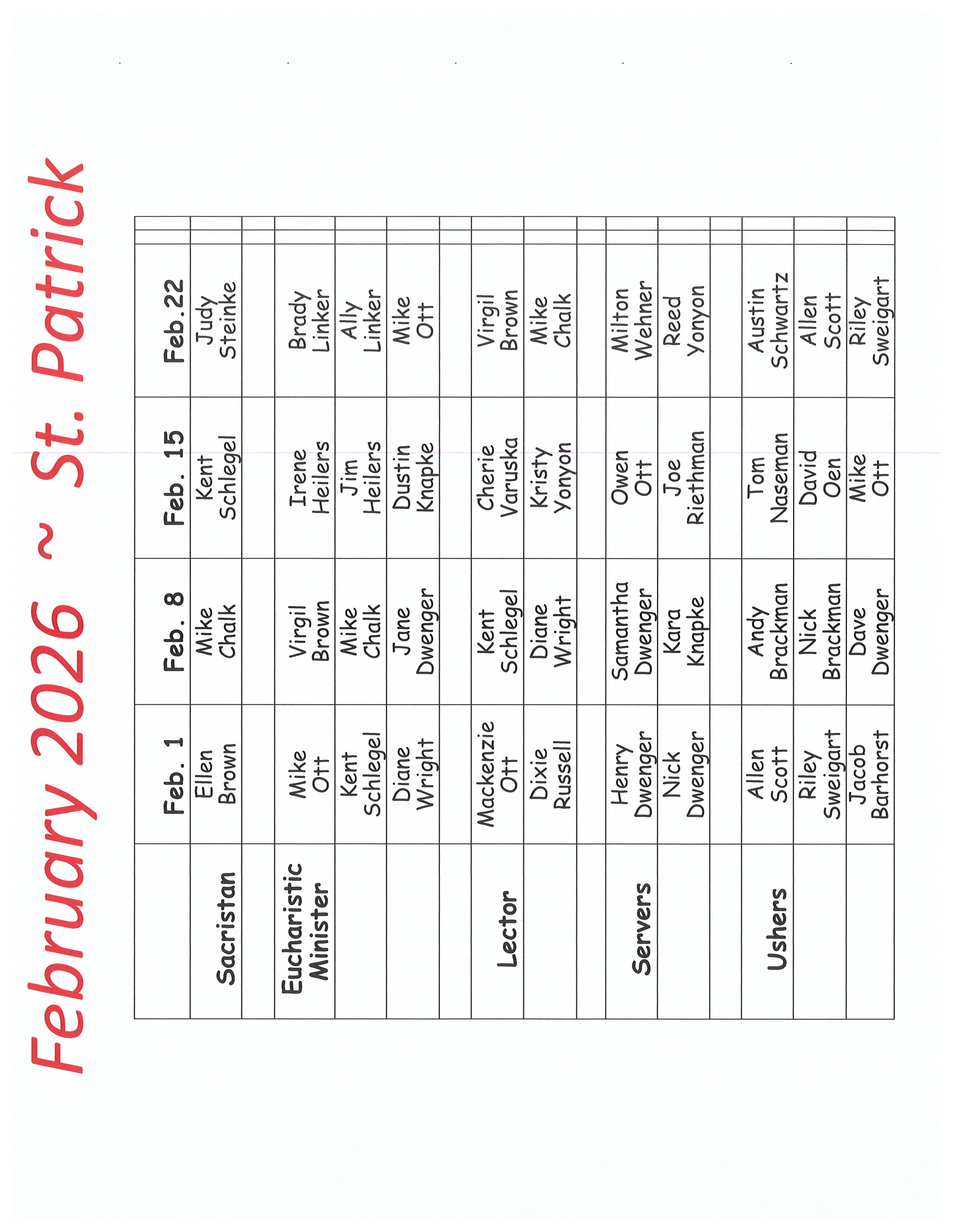 Here you will find the current Ministry Schedule. Schedules will be uploaded monthly and updated when needed. If you see any issues, please contact your parish office to have corrected. Click the button below to view the schedule.